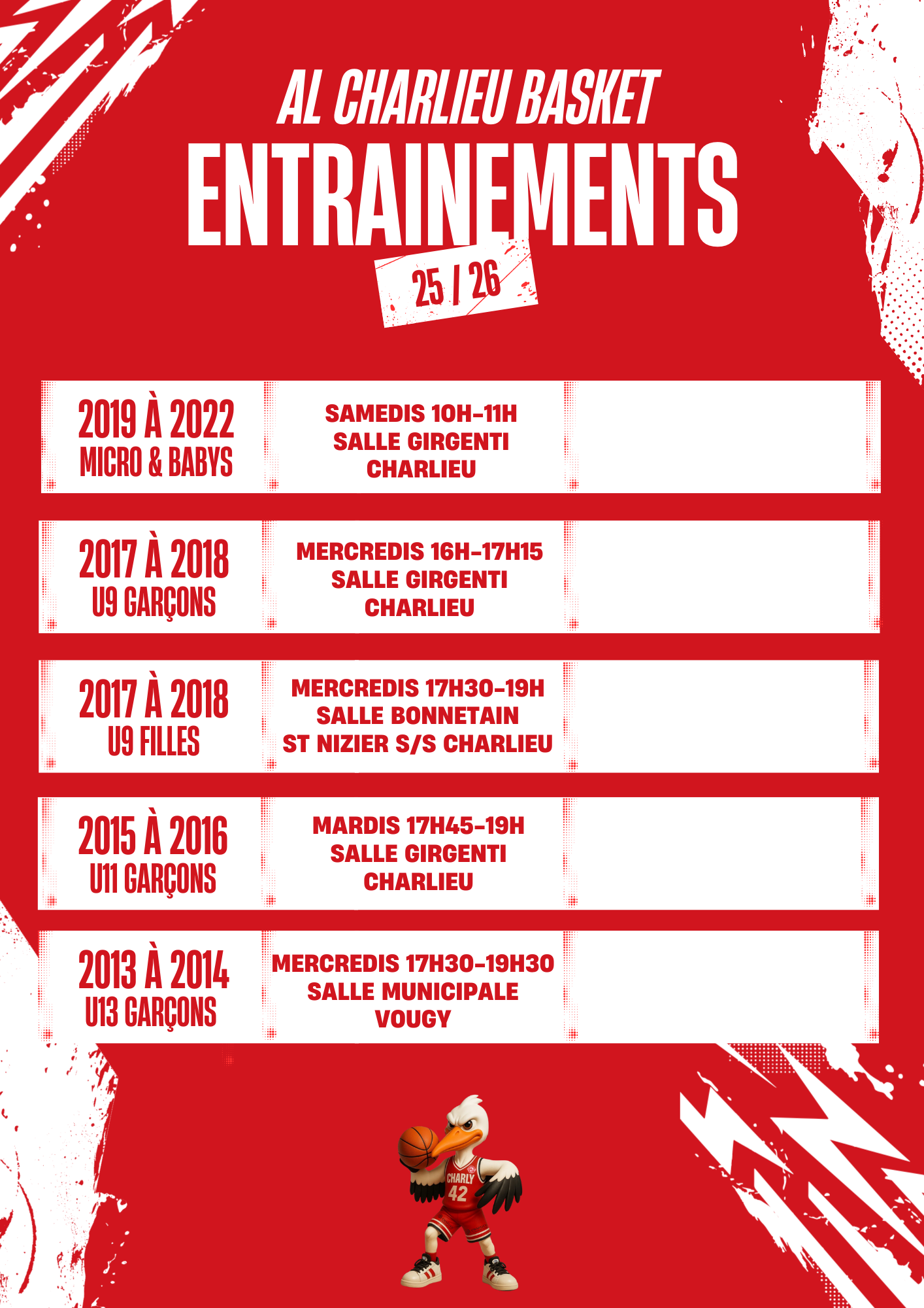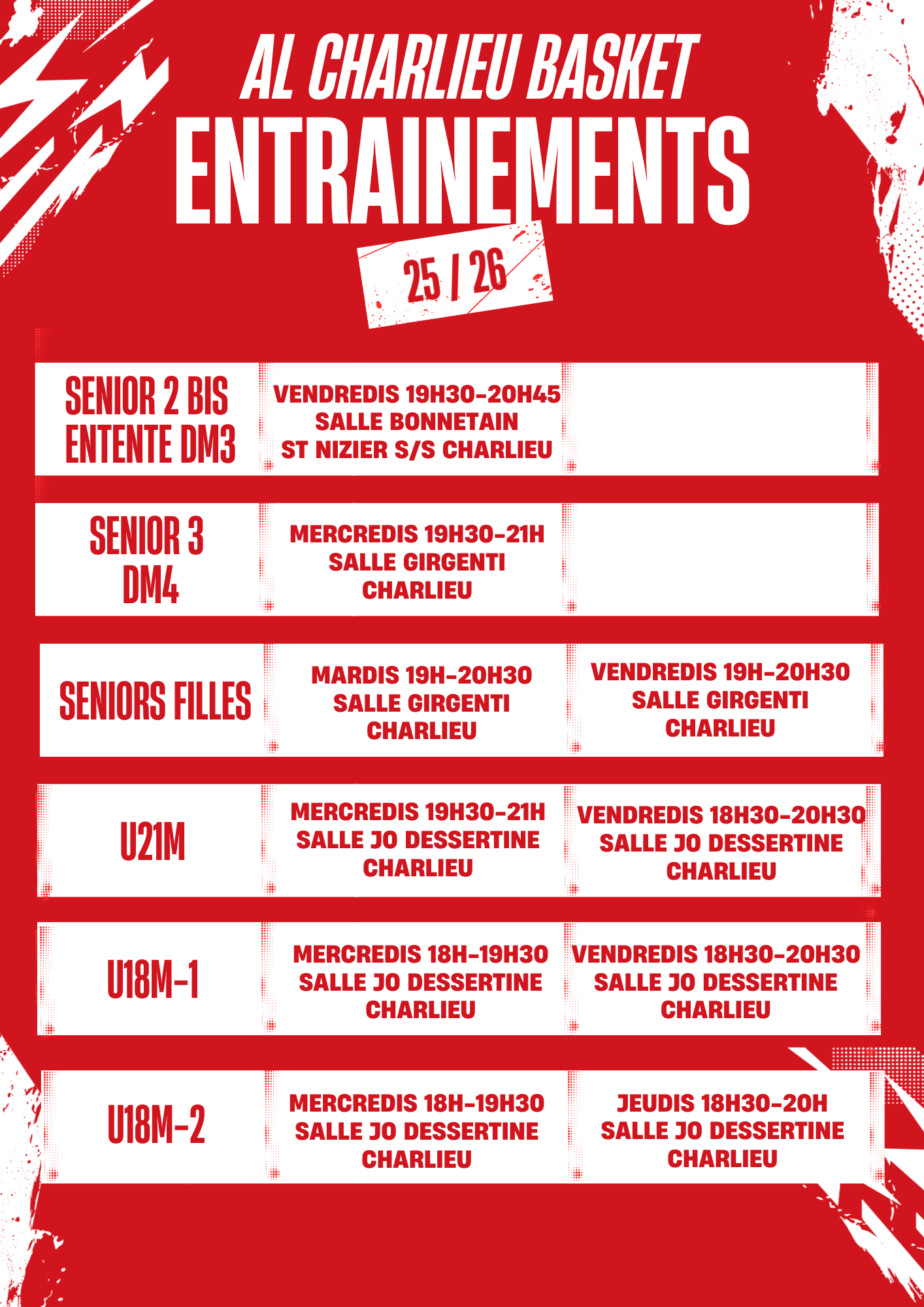 Horaires Entrainements